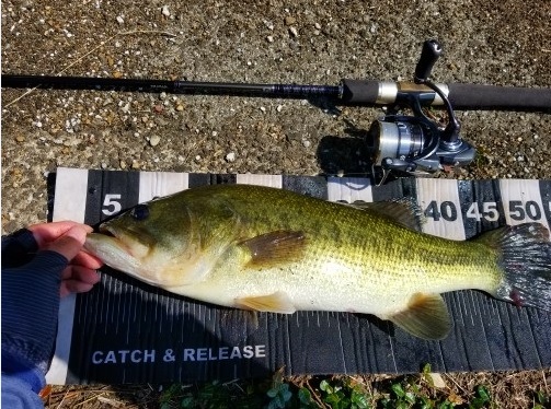 検量後は空いていた場所で日指ダムでは小ぶりな40ジャストぐらいの950グラムをキャッチ。